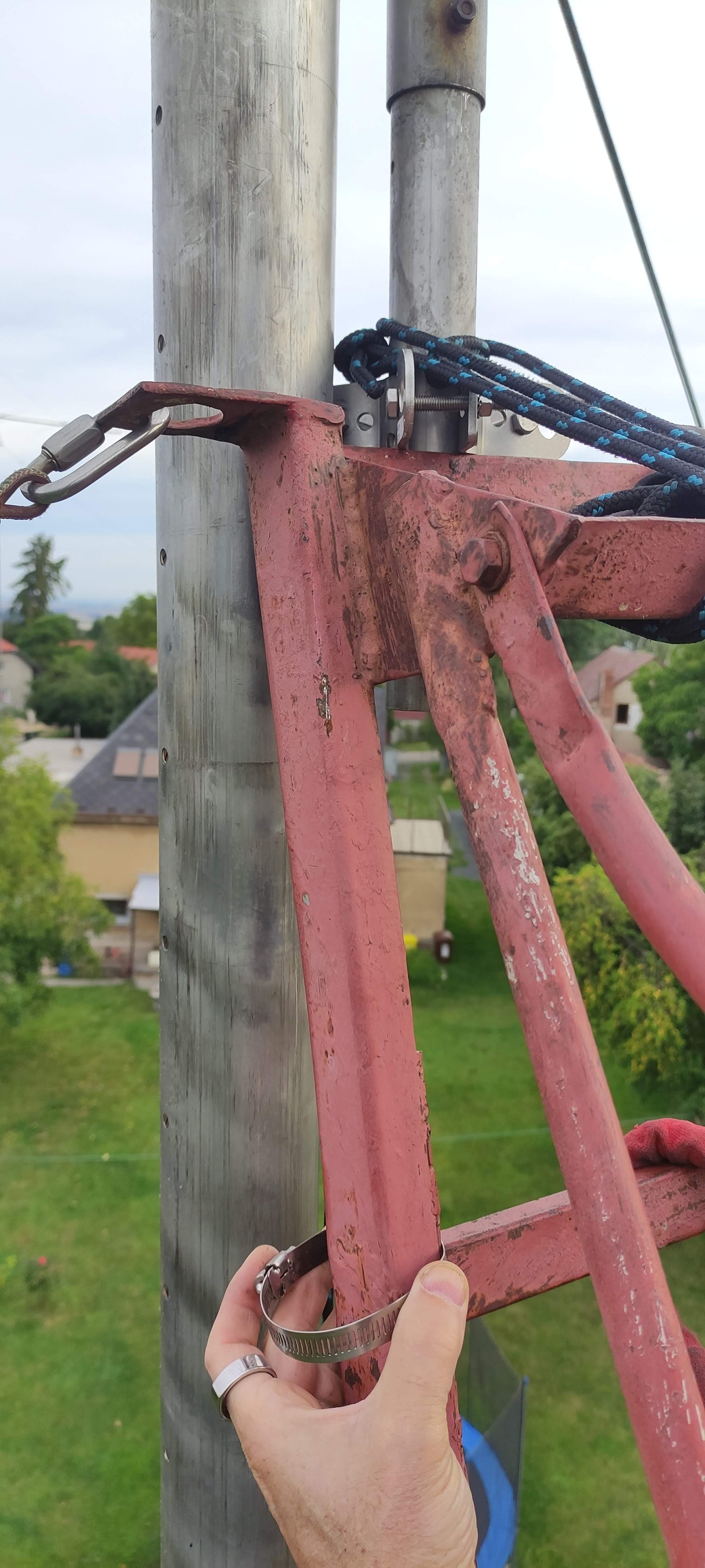 This is the top part of the mast – a fairly robust solution, but it is only held in place by three M5 screws on the upper tube.