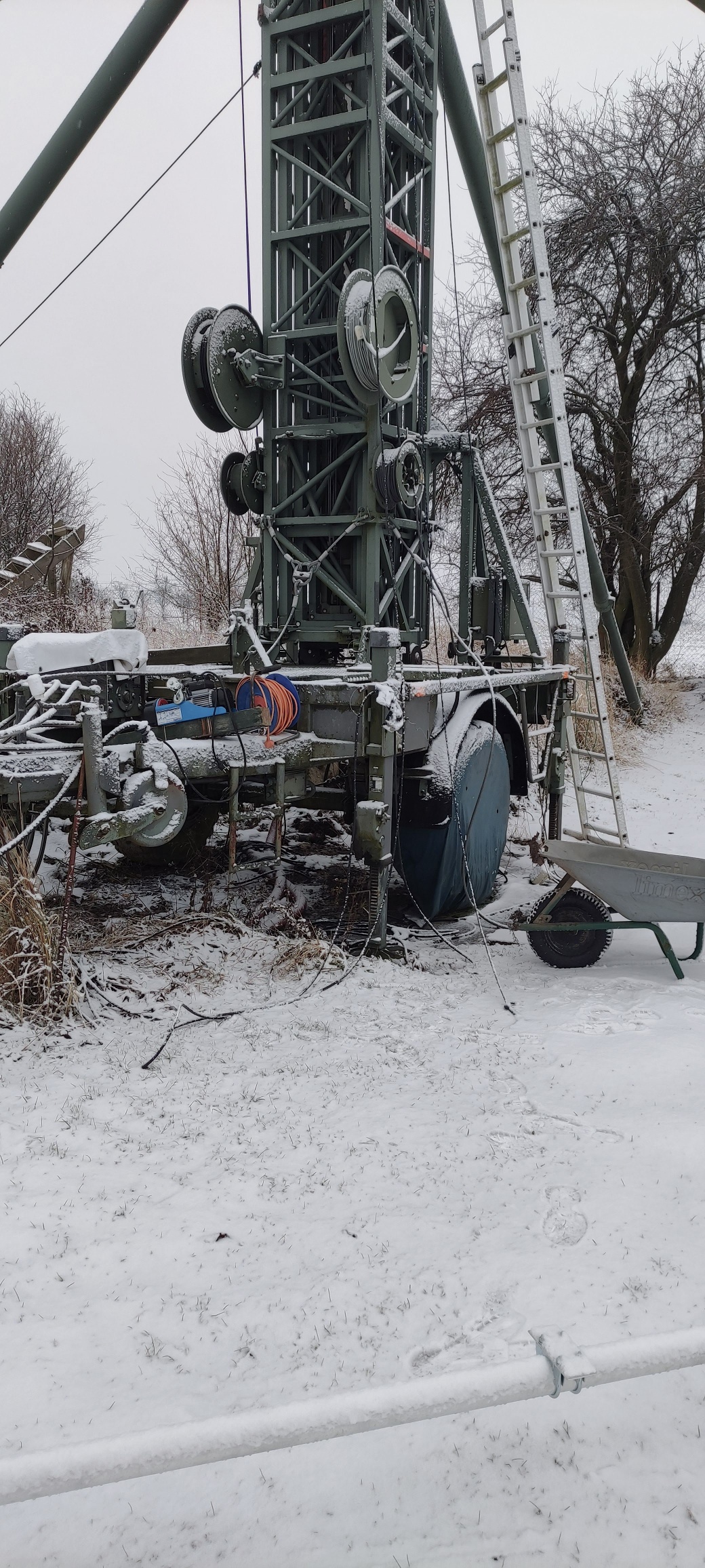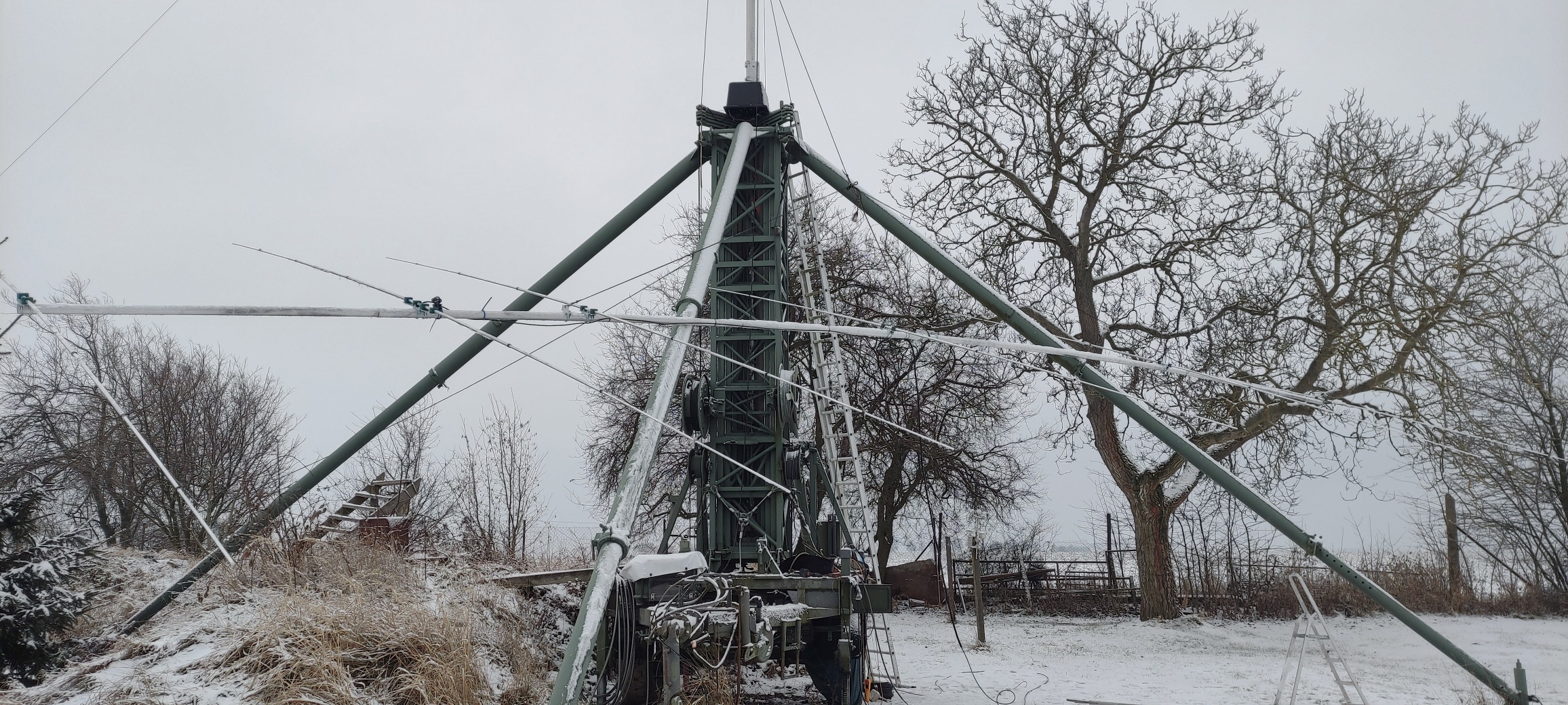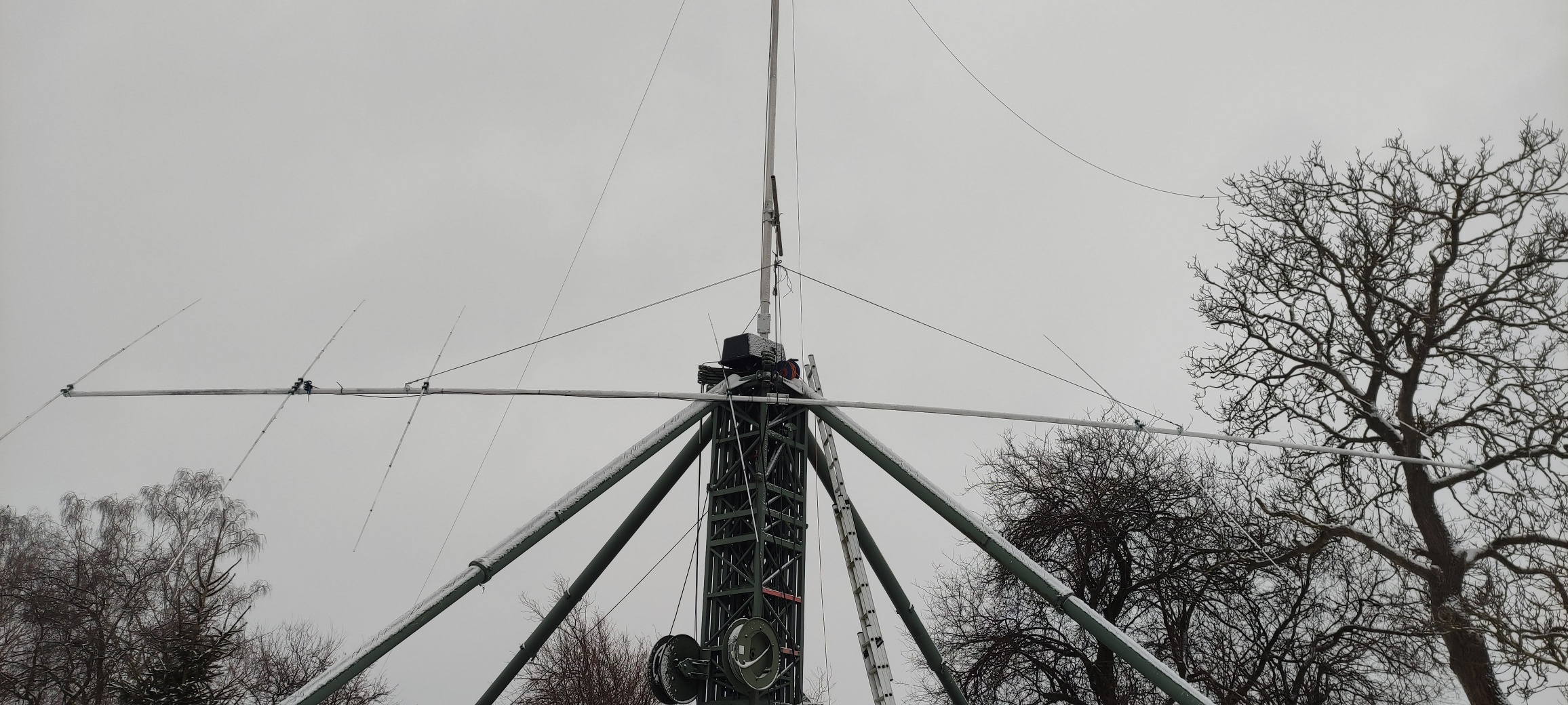 During ARRL CW, I extended the tower a little using a crank handle—the motor drive wasn't working because it was very cold.