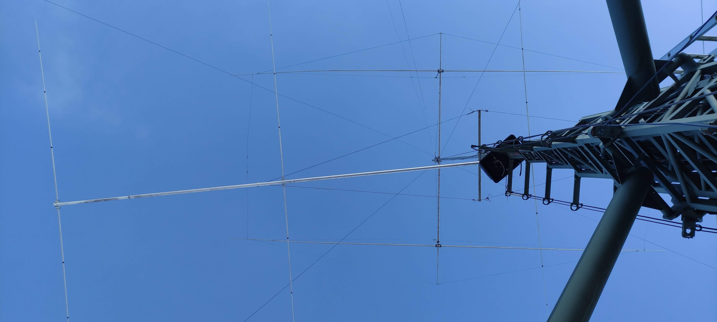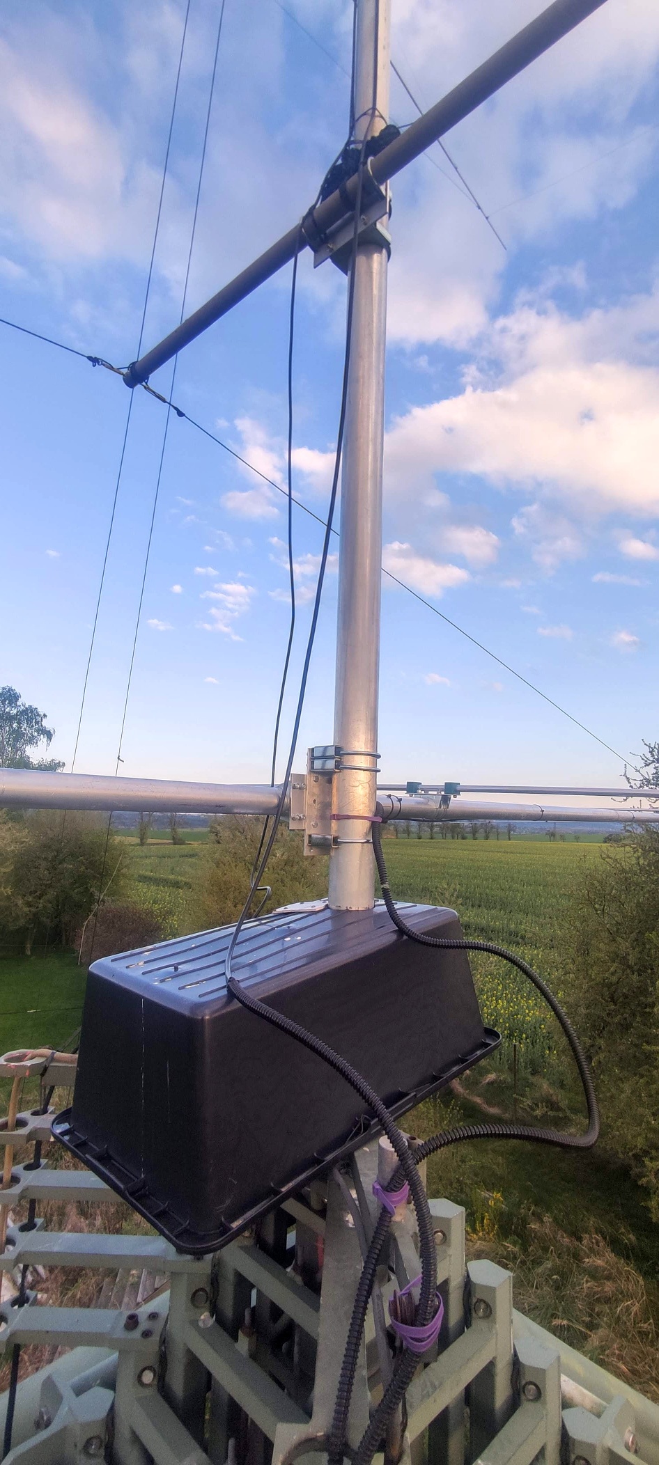 Two months later, I finished cabling so that the antenna could be rotated through its full range. And I aligned it exactly with the Moxon above it :-)